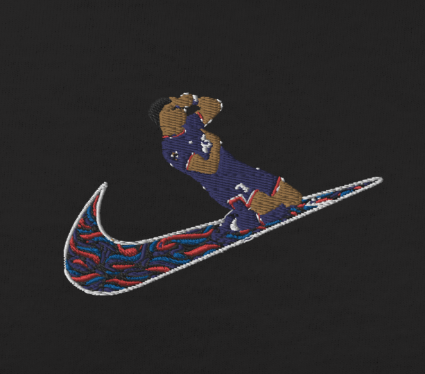 Kylian Mbappe's famous celebration embroidered on a black t-shirt.